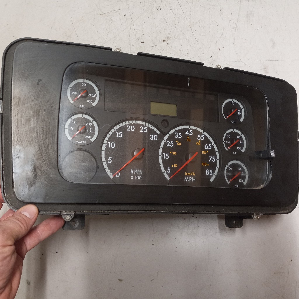 Quality used instrument cluster/dash assembly for a Sterling Acterra truck, may work in other vehicles, comes with oil psi gauge, water temp gauge, fuel gauge, 2x air gauges, RPM gauge,and MPH gauge, backed by our standard warranty.