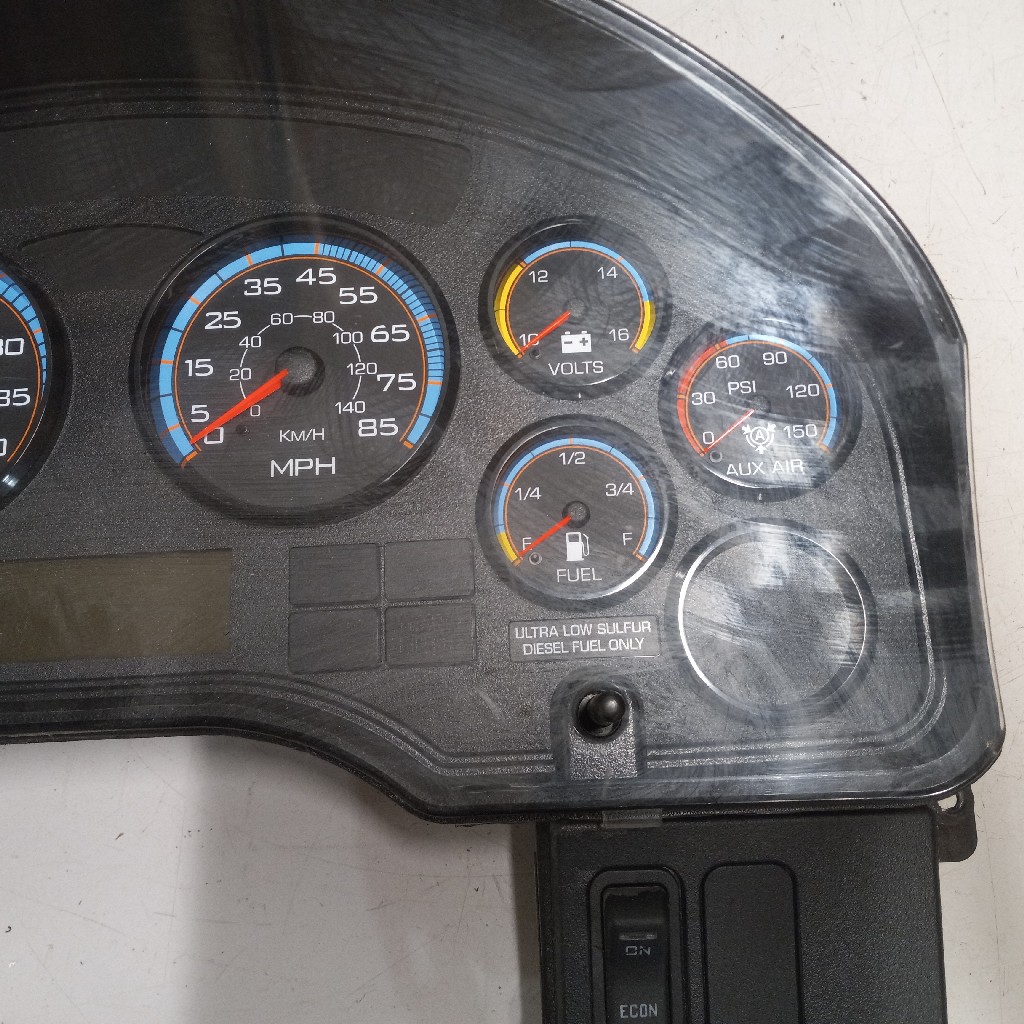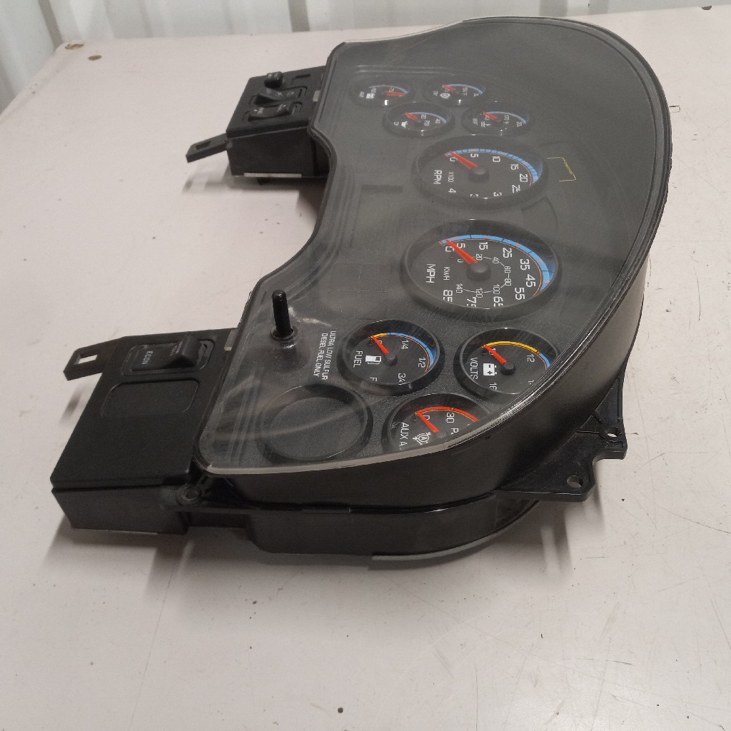 Quality used instrument cluster for International vehicles, includes transmission temp gauge, water temp gauge, oil tempo gauge, amps gauge, RPM gauge, MPH gauge, volts gauge, fuel gauge, aux air gauge, primarily used on 2010 +,backed by our standard warranty.