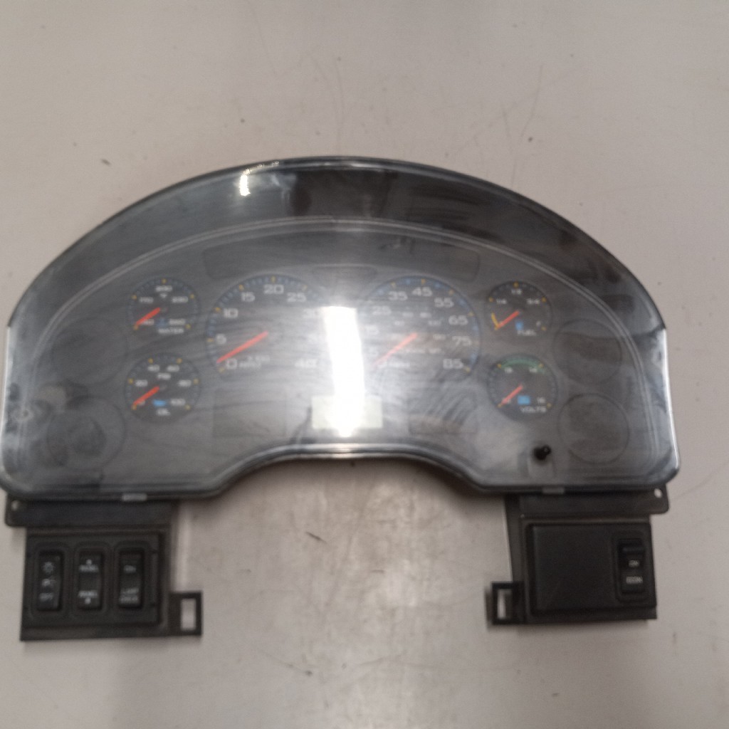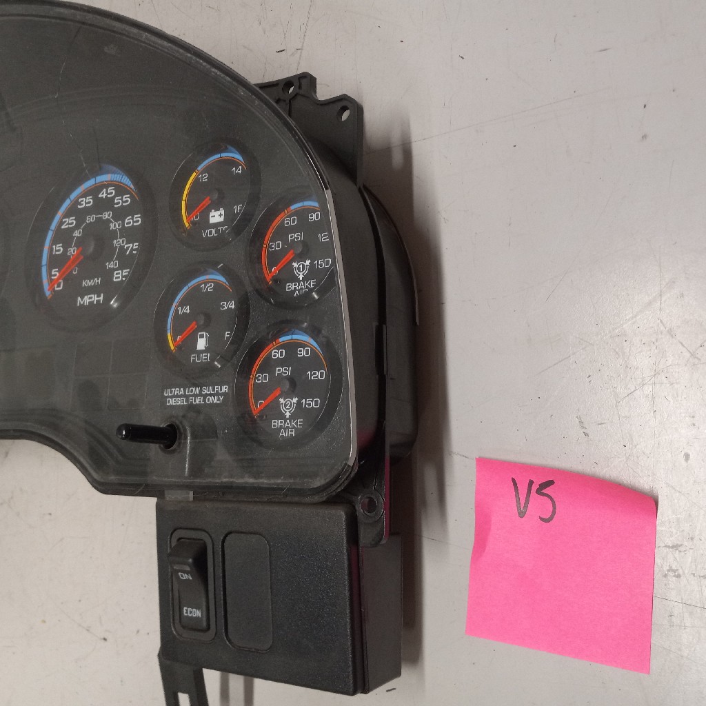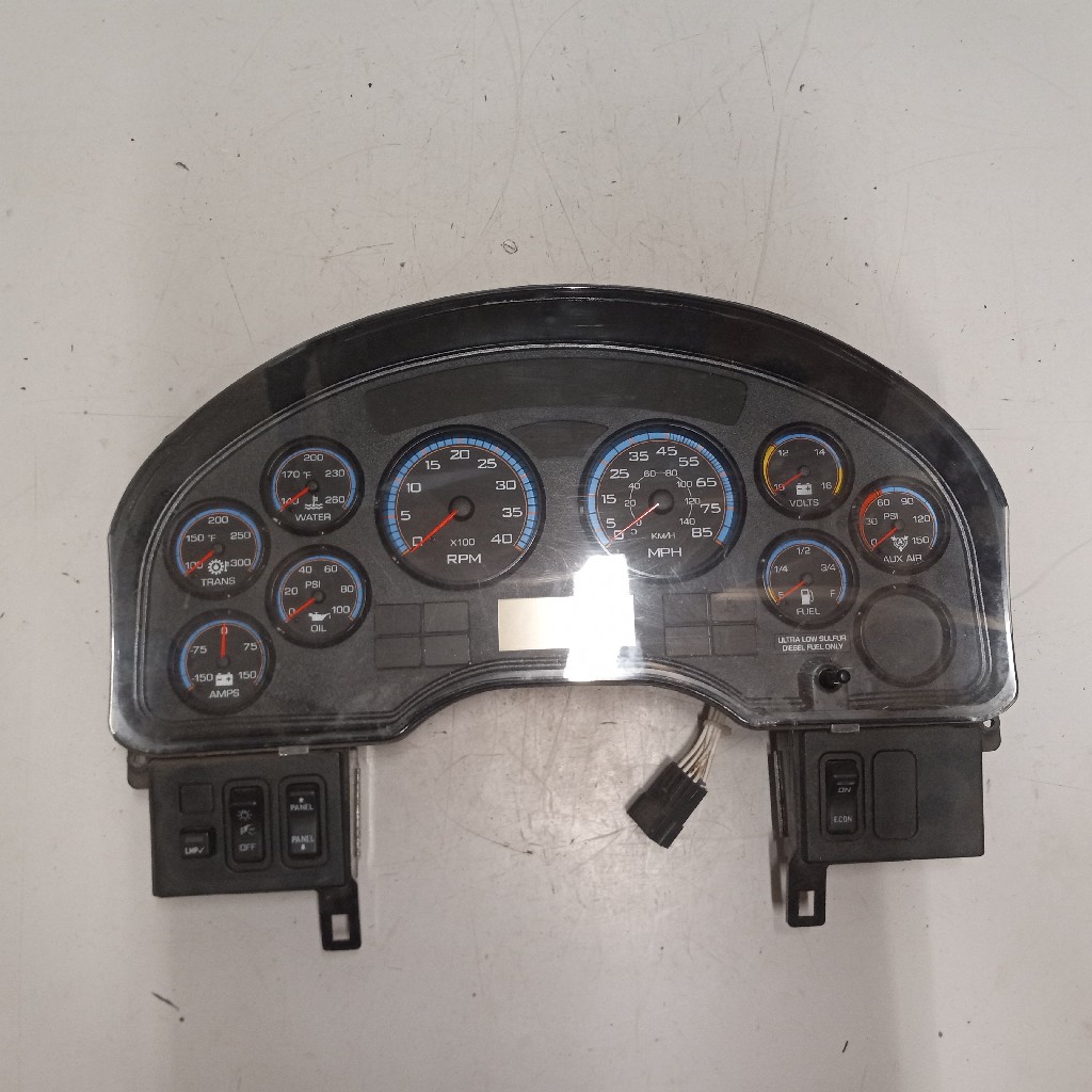Quality used instrument cluster for 2010+ and newer International vehicles wiutrh transmission temp gauge, water temp gauge, oil temp gauge, RPM gauge, MPH gauge, volts gauge, fuel gauge, and brake air gauge, backed by our standard warranty.