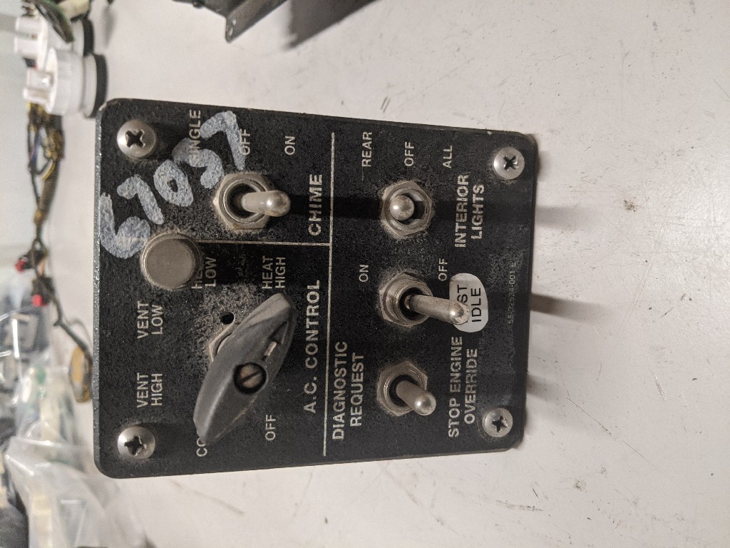 Quality used gillig sawith panel for AC control, chime control switch, interior lights switch, fast idle switch, stop engine overide switch, backed by our standard warranty.