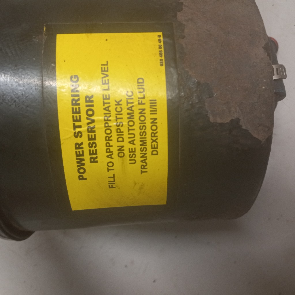 Quality used power steering metal reservoir for a Thomas Built C2 bus or Freightliner with a Mercedes 906 or 926 engine. appears to be an upgrade for part A14-20119-003 or A14-14796-003 backed by our standard warranty.