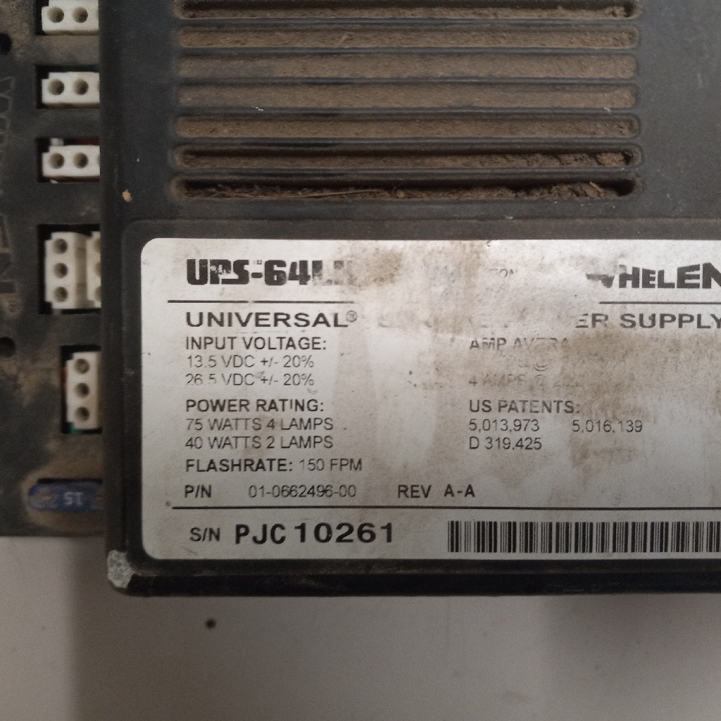 Quality used Whelen/Radwell International -UPS64LX Universal Strobe Power Supply ECM2 – Strobe power supply module, 13.5 VDC, 100 MA, 40/75 W, 4/7 A, 75-220 FPM (UPS-64LX), backed by our standard warranty.