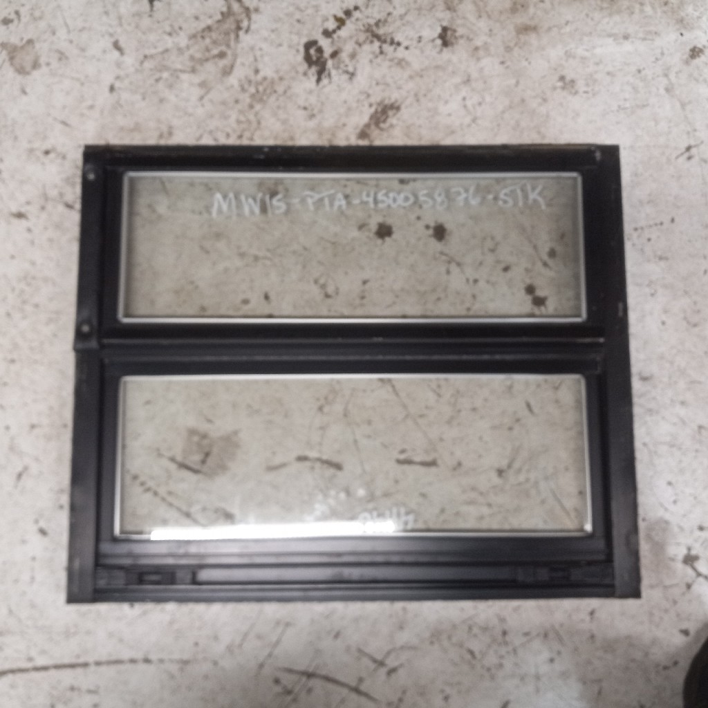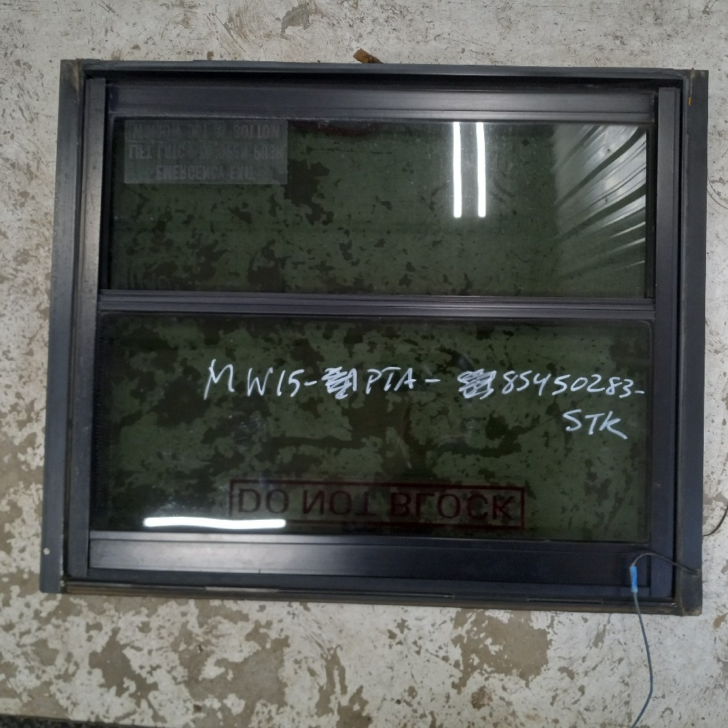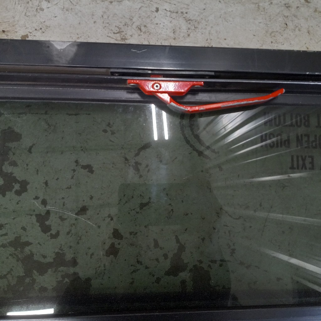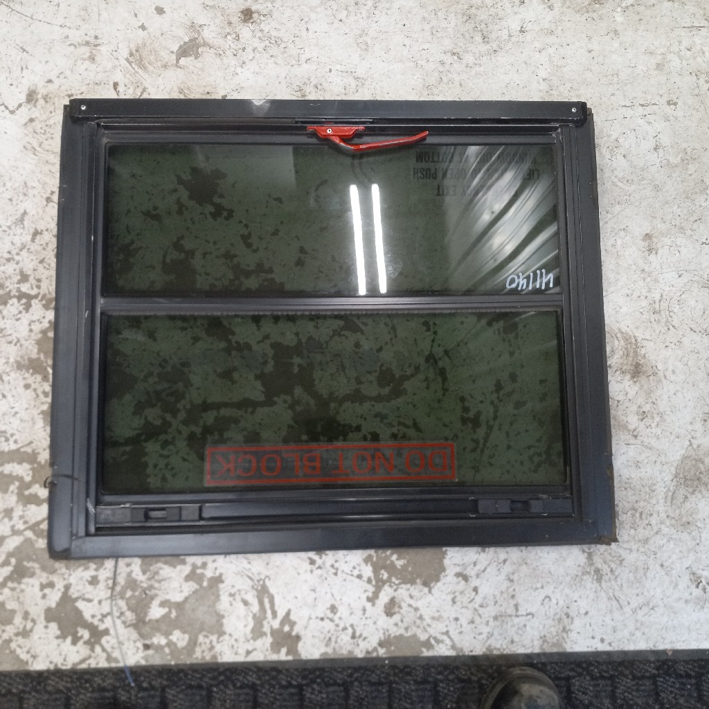 Good used working emergency exit push out window assembly for a Thomas built Bus/Freightliner FS65. Comes in Tinted or clear glass, frame assembly either steel color or painted black. Please specify what options you need to see what is in stock or available to pull. 27 1/4″ L x 22 5/8″ H x 2″ W