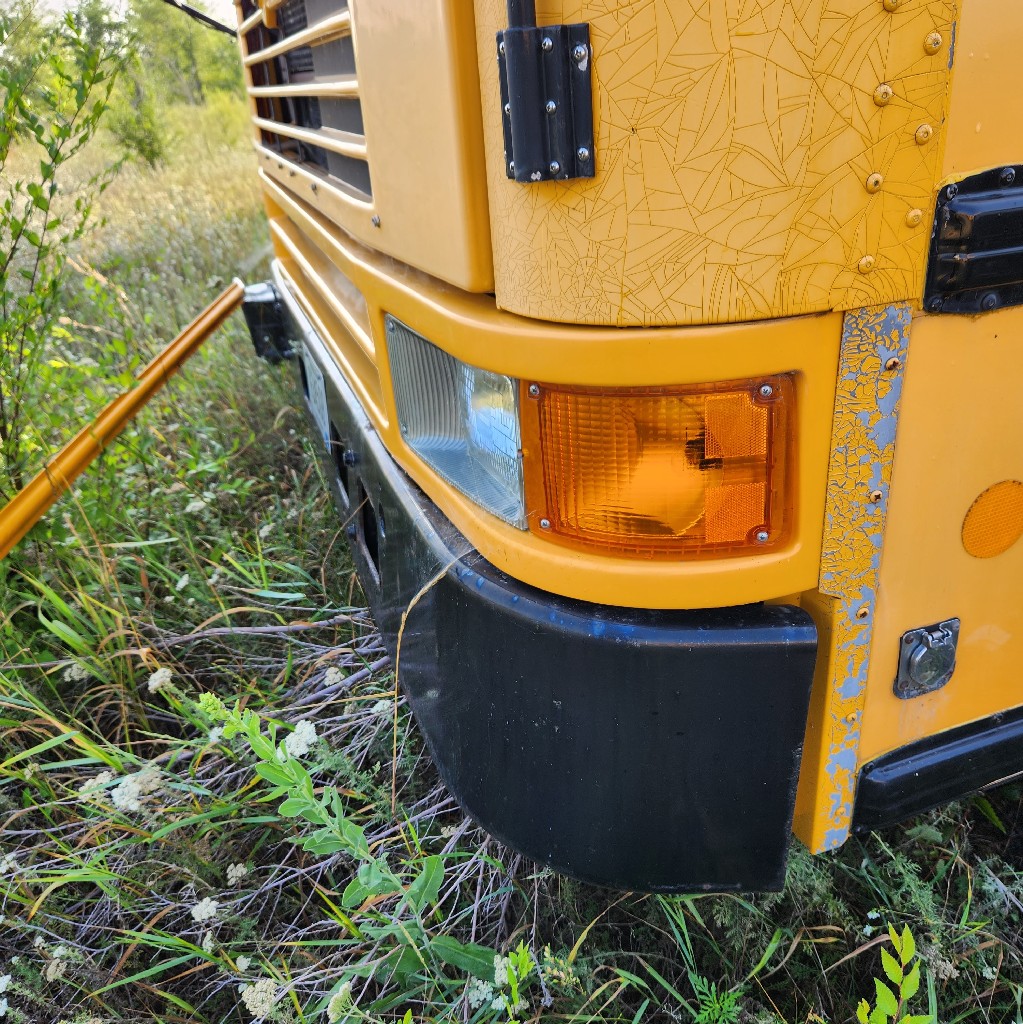 Good used yellow headlight bar assembly for IC or International front engine transit or flat nose busses.